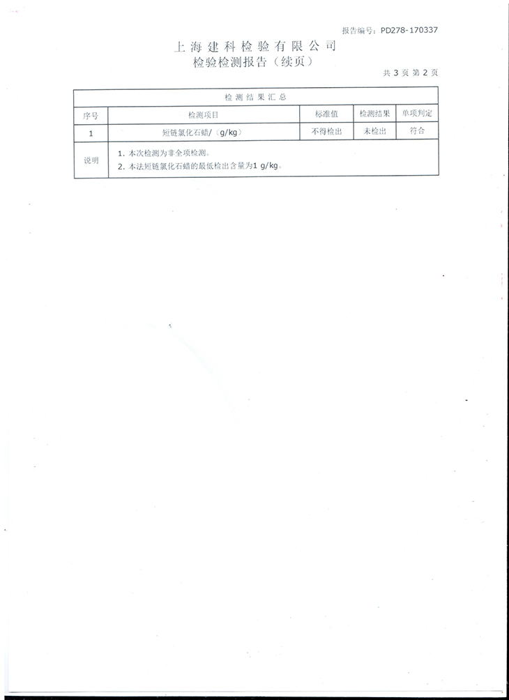 環(huán)保氯化石蠟(附上海建科檢驗檢測報告)